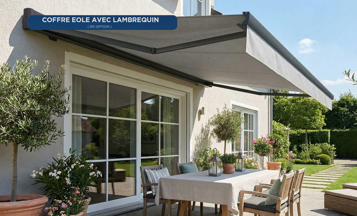 Cette bande de toile peut aider à limiter l’éblouissement causé par le soleil rasant, notamment en fin de journée, lorsque l’avancée du store seule ne suffit plus. Ce lambeau de toile de 25cm sur notre modèle EOLE par exemple, suffit à ombrager plus efficacement une terrasse orientée Ouest et exposée au soleil rasant de la fin d’après-midi. C’est d’ailleurs l’un des intérêts régulièrement mis en avant, en particulier avec les versions de lambrequin enroulable, capables de descendre davantage pour renforcer l’ombre en façade (nous ne proposons pas de store à lambrequin enroulable).