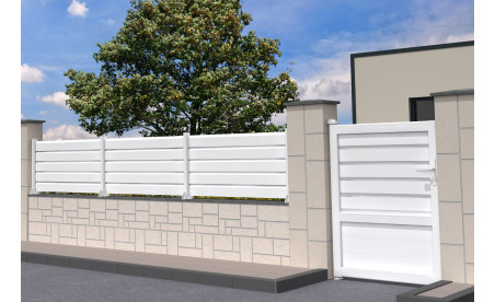 Confectionné avec soin dans nos ateliers en France, ce portillon allie avec brio l'esthétique épurée de l'aluminium et la robustesse d'une structure pensée pour durer. Le design mixte, à la fois plein et ajouré, permet non seulement de préserver l'intimité de votre espace, mais également de laisser filtrer la lumière naturelle, créant un jeu d'ombre et de lumière qui donnera du caractère à votre entrée.